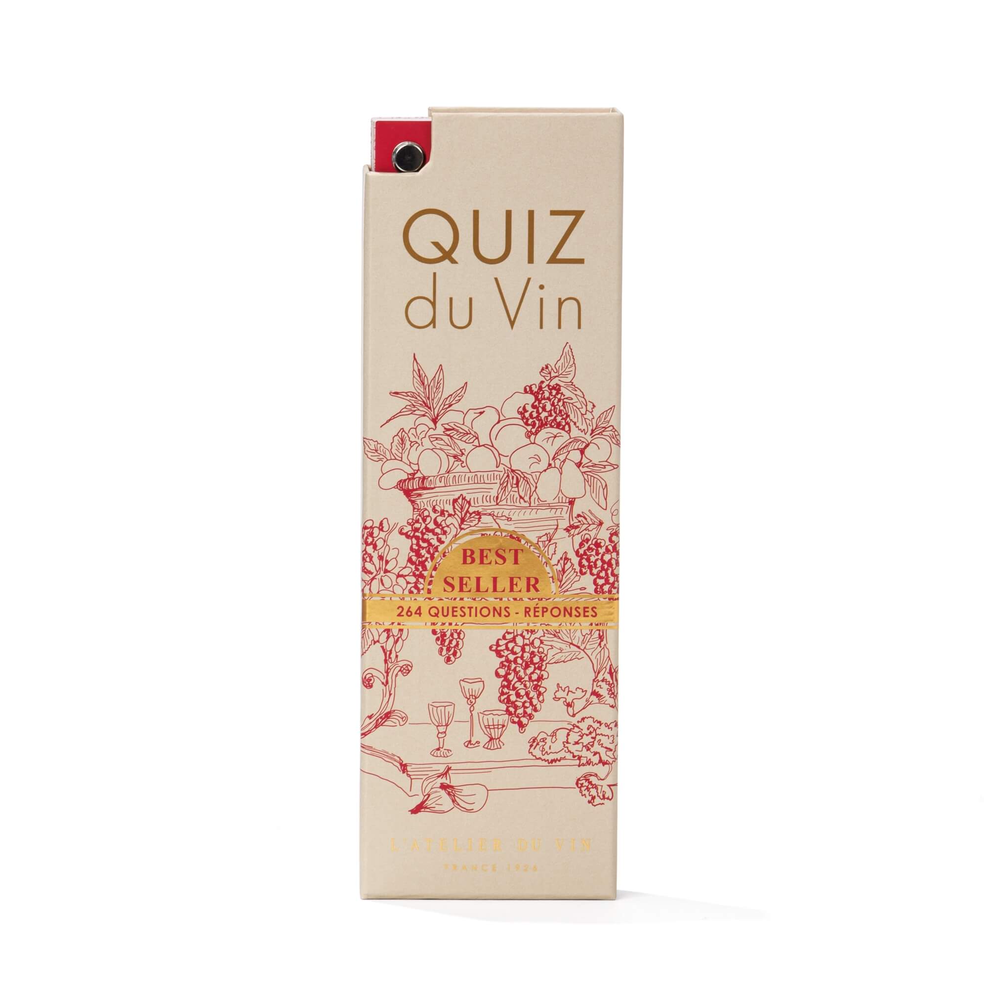 Quiz du Vin — это увлекательная обучающая игра‑викторина, содержащая 264 вопроса и ответов, которая поможет расширить знания о вине и сделает процесс дегустации и общения за столом более глубоким и познавательным. Идеальный подарок для энтузиастов, сомелье и всех, кто стремится познать мир вина через интерес и игру.