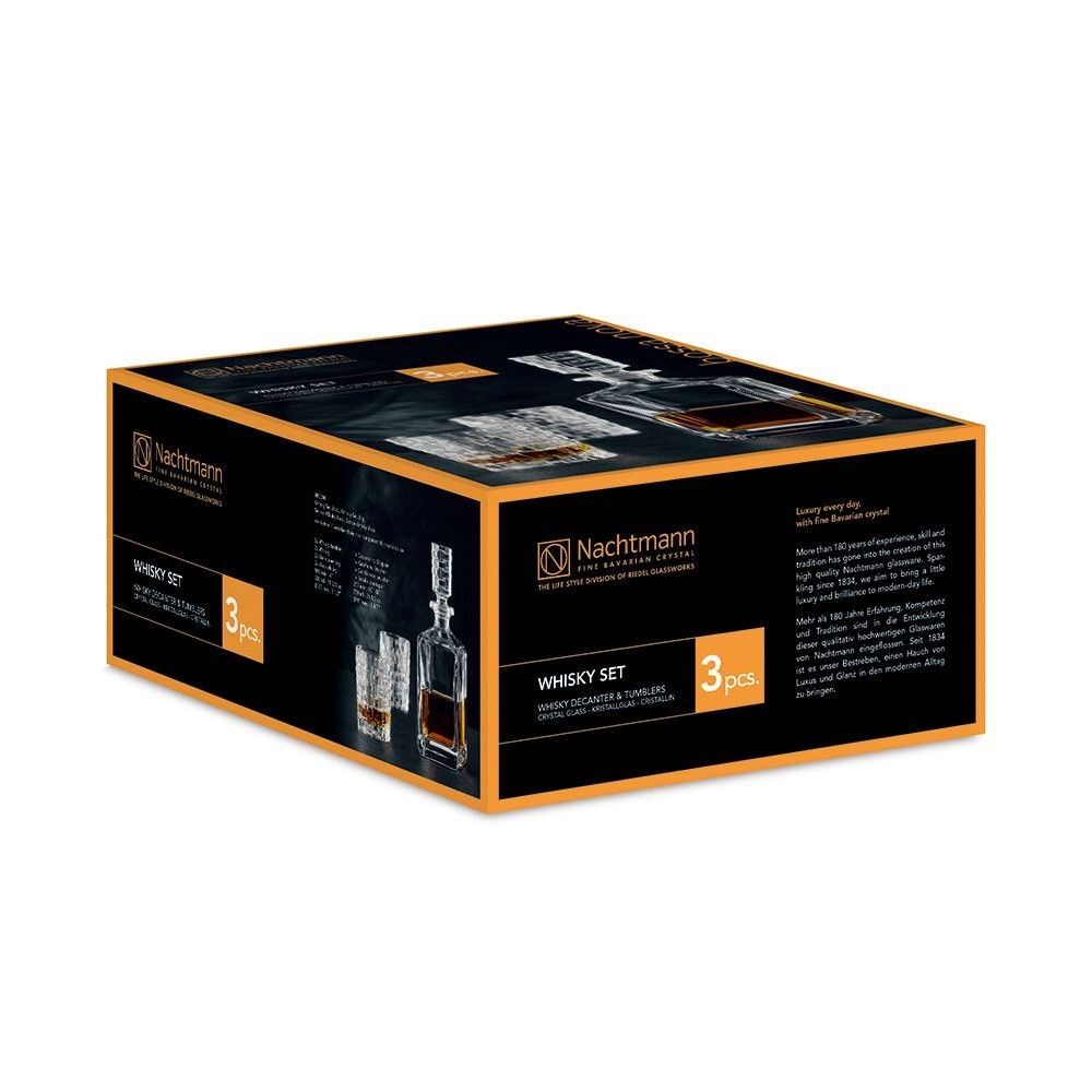 Произведённый в Германии, набор изготовлен из высококачественного хрустального стекла, отличающегося блеском, прочностью и долговечностью. Общий вес — 2 кг, что свидетельствует о солидности изделия и делает его устойчивым при использовании. В набор входит 1 декантер и 2 стакана — всё необходимое для эффектной подачи и дегустации виски. Упаковка размером 15 x 30 x 30 см удобна как для хранения, так и для подарка. Такой комплект станет прекрасным решением для домашнего бара, подарка мужчине или элемента профессиональной сервировки в ресторане.
