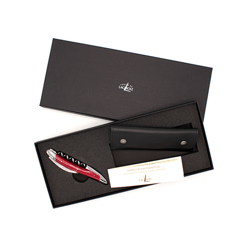 Модель выполнена из нержавеющей стали и прочного композитного материала с выразительной красной отделкой, что придает штопору современный и узнаваемый облик. Аксессуар укомплектован кожаным чехлом и стильной подарочной коробкой, а также сопровождается сертификатом подлинности. Благодаря своему дизайну и удобной конструкции, штопор идеально лежит в руке, обеспечивая лёгкое и уверенное открывание любой винной бутылки. Прекрасный выбор для профессионалов и ценителей вина.