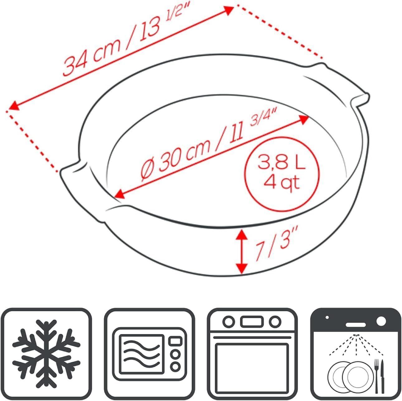 Изготовленная из прочной керамики, форма прекрасно распределяет тепло, позволяя равномерно пропекать продукты. Вес 2,1 кг придаёт стабильность при использовании, а благодаря диаметру 34 см можно готовить блюда на большую семью или компанию. Эргономичная форма, надёжность и простота в уходе делают этот аксессуар неотъемлемой частью современной кухни. Производство во Франции гарантирует высокие стандарты качества и долговечности.
