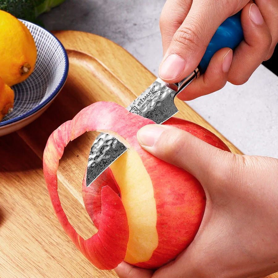Профессиональный овощной нож Keemake B-7 из серии Blue Sky — это сочетание утончённого дизайна, высоких технологий и мастерства традиционной ковки. Компактный и сверхострый нож идеально подходит для очистки овощей и фруктов, нарезки мелких ингредиентов и тонких кулинарных операций, требующих точности и лёгкости. Уникальная комбинация природных материалов и дамасской стали придаёт ножу не только исключительные эксплуатационные качества, но и эстетическую привлекательность.
