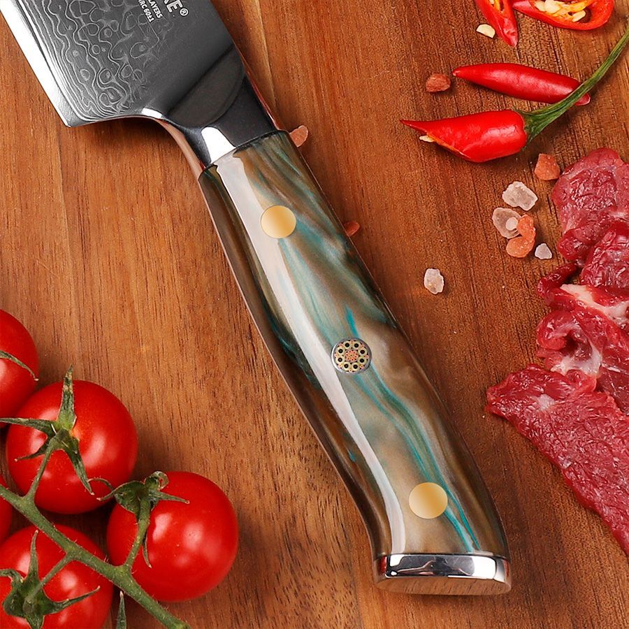 Нож шеф-повара Keemake CR-5 — это идеальное сочетание японской точности, дамасской традиции и современного дизайна. Подходит как для профессиональных шефов, так и для домашнего использования, обеспечивая безупречное качество каждого среза.