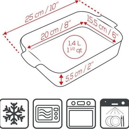 Форма выполнена из прочной керамики, которая обеспечивает равномерное распределение тепла и сохраняет температуру блюда на протяжении длительного времени. Благодаря весу в 0,9 кг изделие удобно в использовании и безопасно при манипуляциях. Эргономичный дизайн и удобные края позволяют легко переносить форму, а гладкая глазурь облегчает очистку после использования. Это идеальный выбор для запеканок, овощей, мяса, рыбы или десертов. Форму можно использовать в духовке, микроволновой печи и мыть в посудомоечной машине.