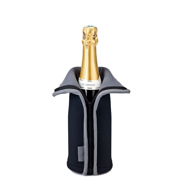 Модель выполнена из неопрена — прочного и гибкого материала, который отлично сохраняет температуру напитка, при этом оставаясь легкой и компактной. Вес изделия составляет всего 0,175 кг, что делает рубашку удобной в повседневном использовании и при транспортировке. Элегантный темно-синий цвет добавляет утонченности и стильно сочетается с любыми сервировками и интерьерами. Эргономичная форма обеспечивает плотное облегание бутылки и равномерное охлаждение, создавая идеальные условия для подачи вина или шампанского в любое время и в любом месте.