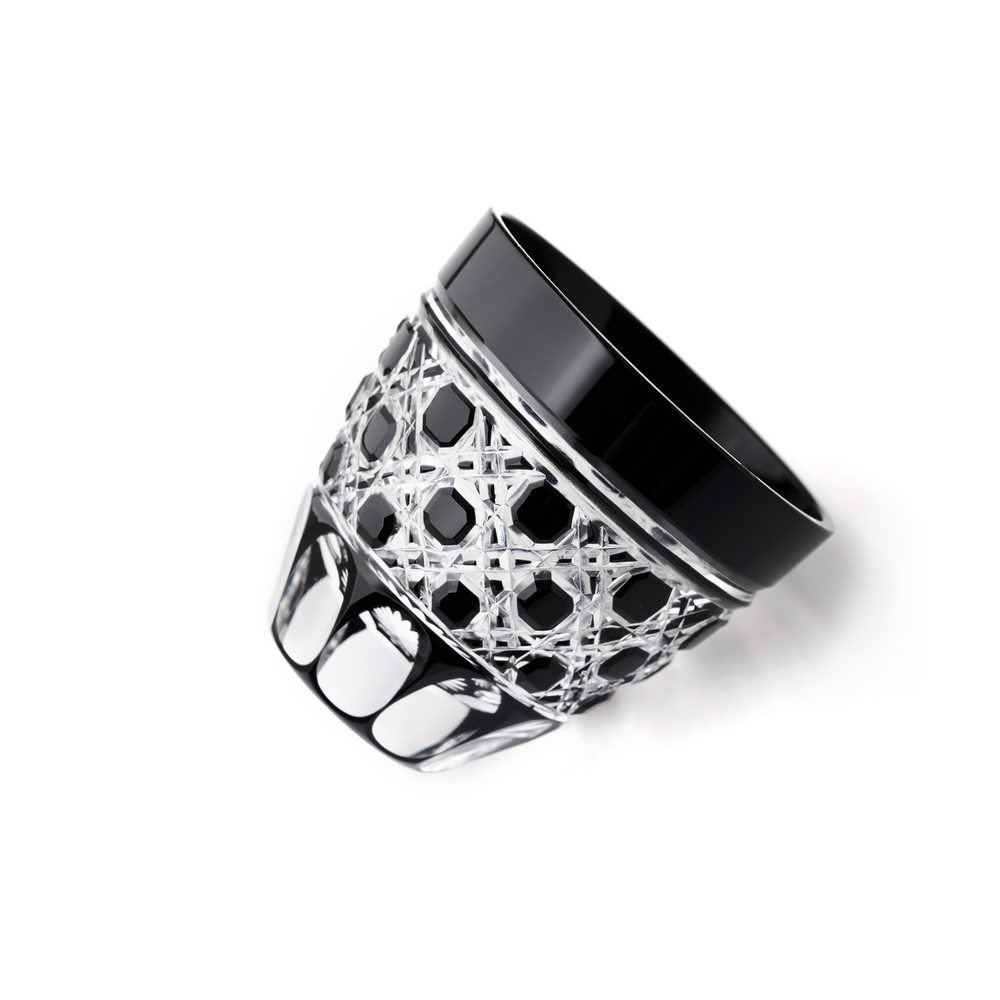 Японское название узора — Хаккаку Кагомэ, что означает «восьмиугольное плетение бамбуковой корзины». Непрерывное геометрическое плетение требует высочайшего мастерства резки и выполняется только самыми опытными ремесленниками. Множество граней отражают свет, создавая насыщенную игру бликов. В нижней части рюмки расположены лепестки хризантемы («кику») — национального символа Японии, олицетворяющего солнце, долголетие, благополучие и императорскую власть.
