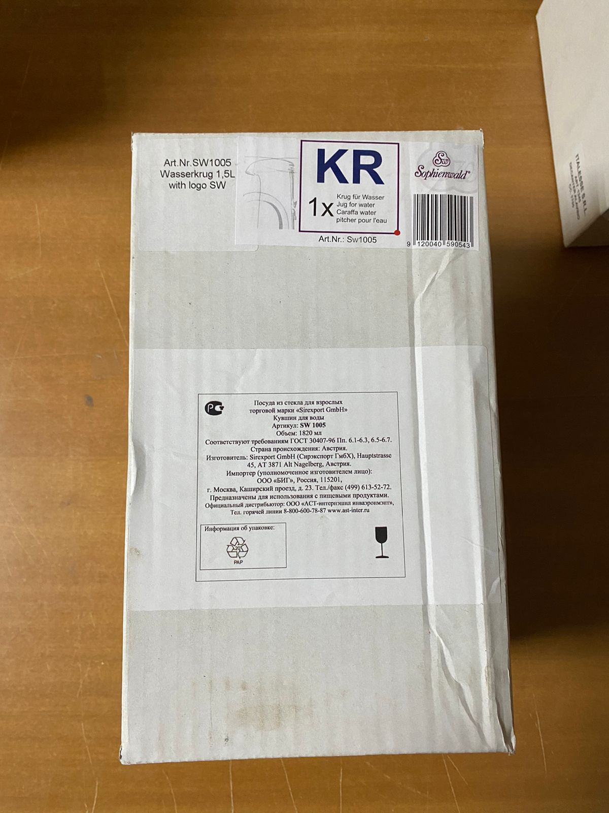 Графин для воды Sophienwald Water Carafe — это элегантный и функциональный аксессуар, созданный для утончённой подачи воды, соков и других прохладительных напитков. Изготовленный в Австрии из хрустального стекла, не содержащего свинца, он сочетает в себе премиальное качество, стильный дизайн и долговечность. Прозрачное стекло подчёркивает чистоту линий и содержимого, а объём 1820 мл делает графин удобным как для повседневного, так и для праздничного использования.