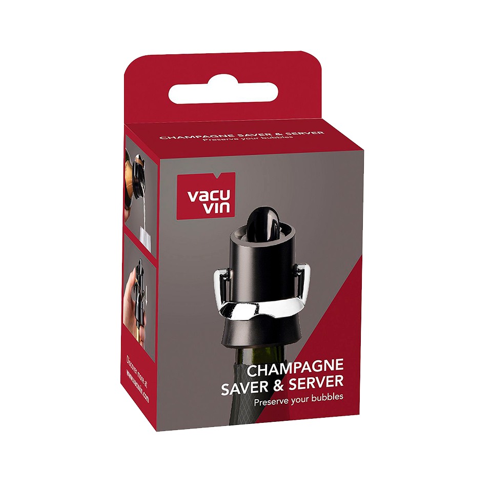Пробка Vacu Vin предназначена для сохранения и розлива игристых и шампанских вин. Она удерживает пузырьки в бутылке и замедляет окисление. Специальная ручка в открытом положении превращает устройство в каплеуловитель для удобства розлива шампанского по бокалам, а в закрытом – в пробку, надежно сохраняющую напиток свежим.