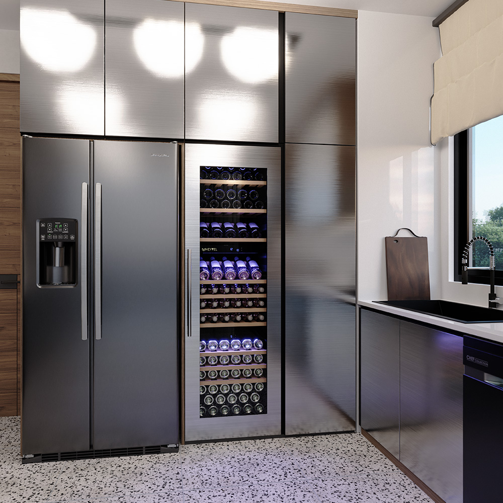 С оптимальным весом в 106 кг, винный шкаф удобен в эксплуатации и транспортировке. Комплект включает 1 винный шкаф, что делает его универсальным решением для дома или профессионального использования. Благодаря изысканному сочетанию цветов — черный и серебристый — он прекрасно впишется в любой интерьер, добавляя в пространство нотку элегантности.