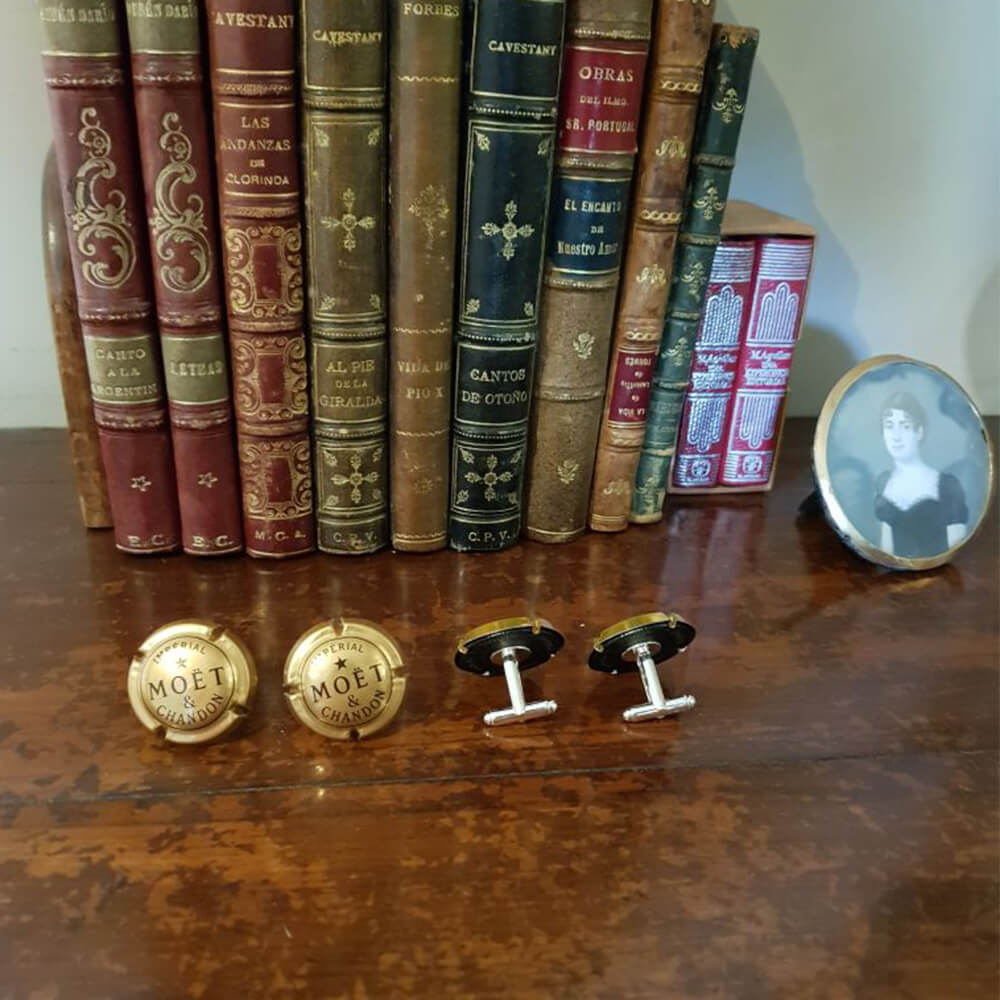 Запонки из настоящих плакеток шампанского Innosphere Moet Chandon — оригинальный барный аксессуар, способный подчеркнуть вкус и индивидуальность своего обладателя. Эти стильные запонки созданы на основе аутентичных плакеток от бутылок шампанского Moet & Chandon, что делает их не только изысканным элементом гардероба, но и предметом, несущим в себе частичку винной культуры. Идеальны для торжественных мероприятий, светских вечеров или оригинального подарка ценителю шампанского и нестандартных аксессуаров.