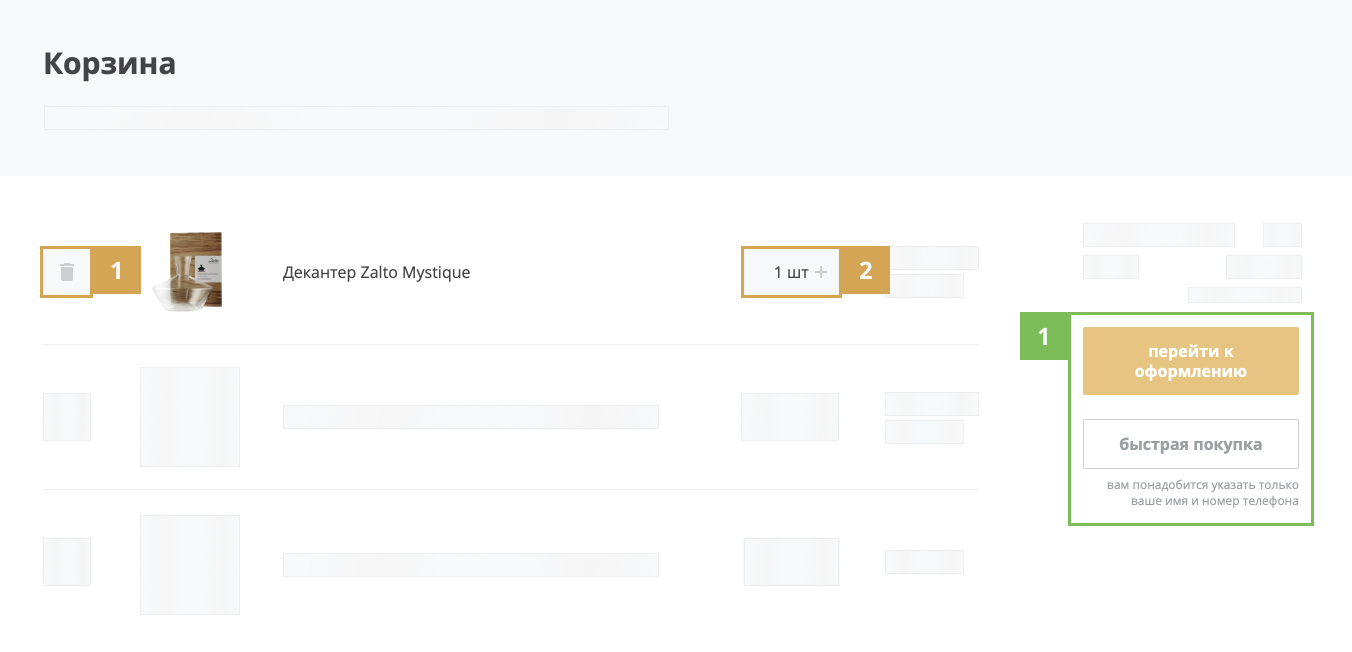 Перед оформлением заказа, в корзине просмотрите список покупок.